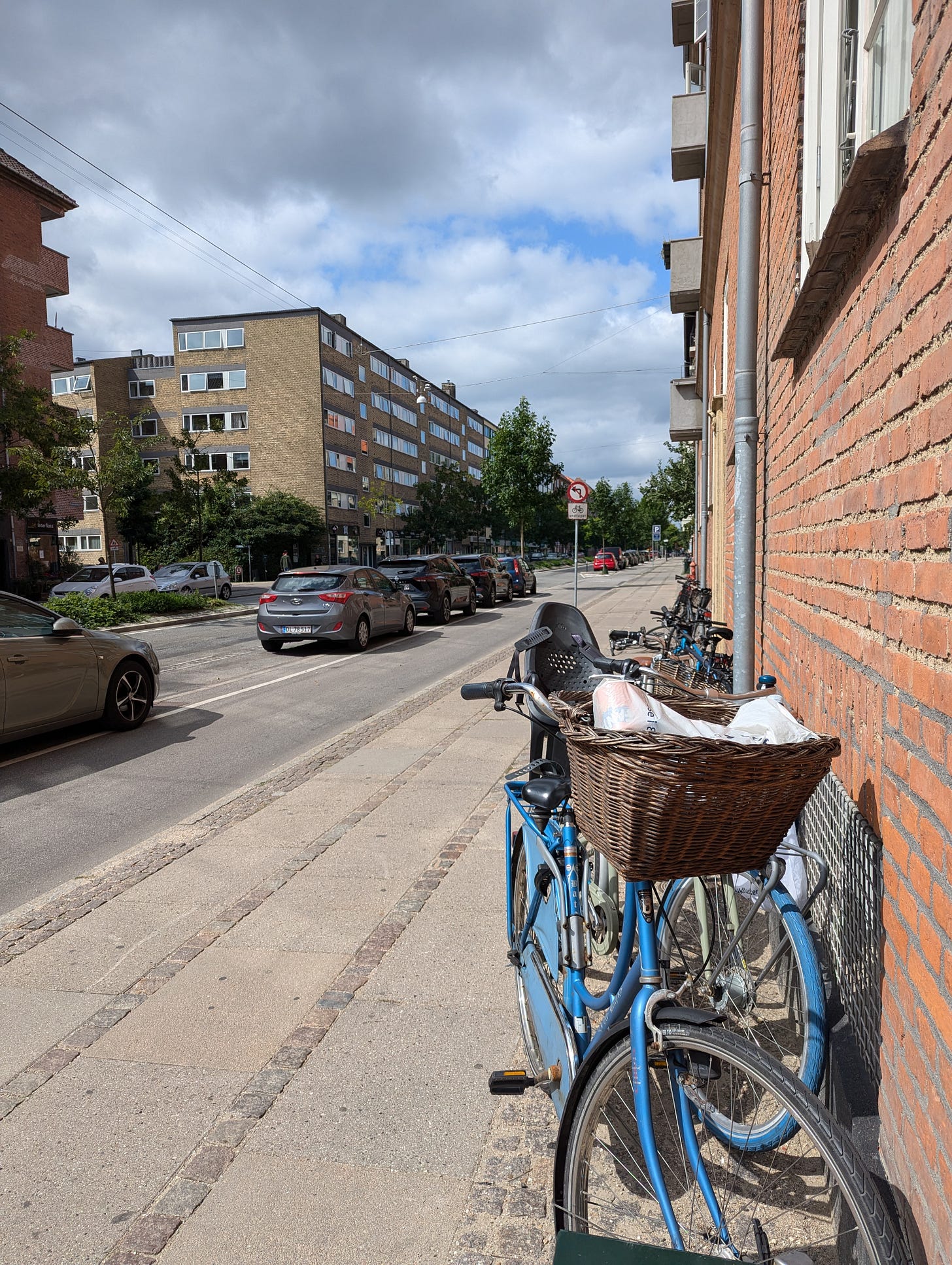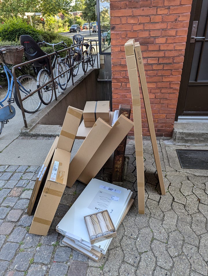 Off we cycled in search of window coverings and a speedy lunch. I think it was our quickest visit to Ikea yet. Record time! Curtains, curtain rods, tools, hardware and a big floor lamp for the stue (living room). We paid and loaded up our bikes (an amusing sight I’m sure). Baskets, bags and parcel shelves completely stuffed. The 15-minute cycle back home was sweaty and a rather precarious pursuit.