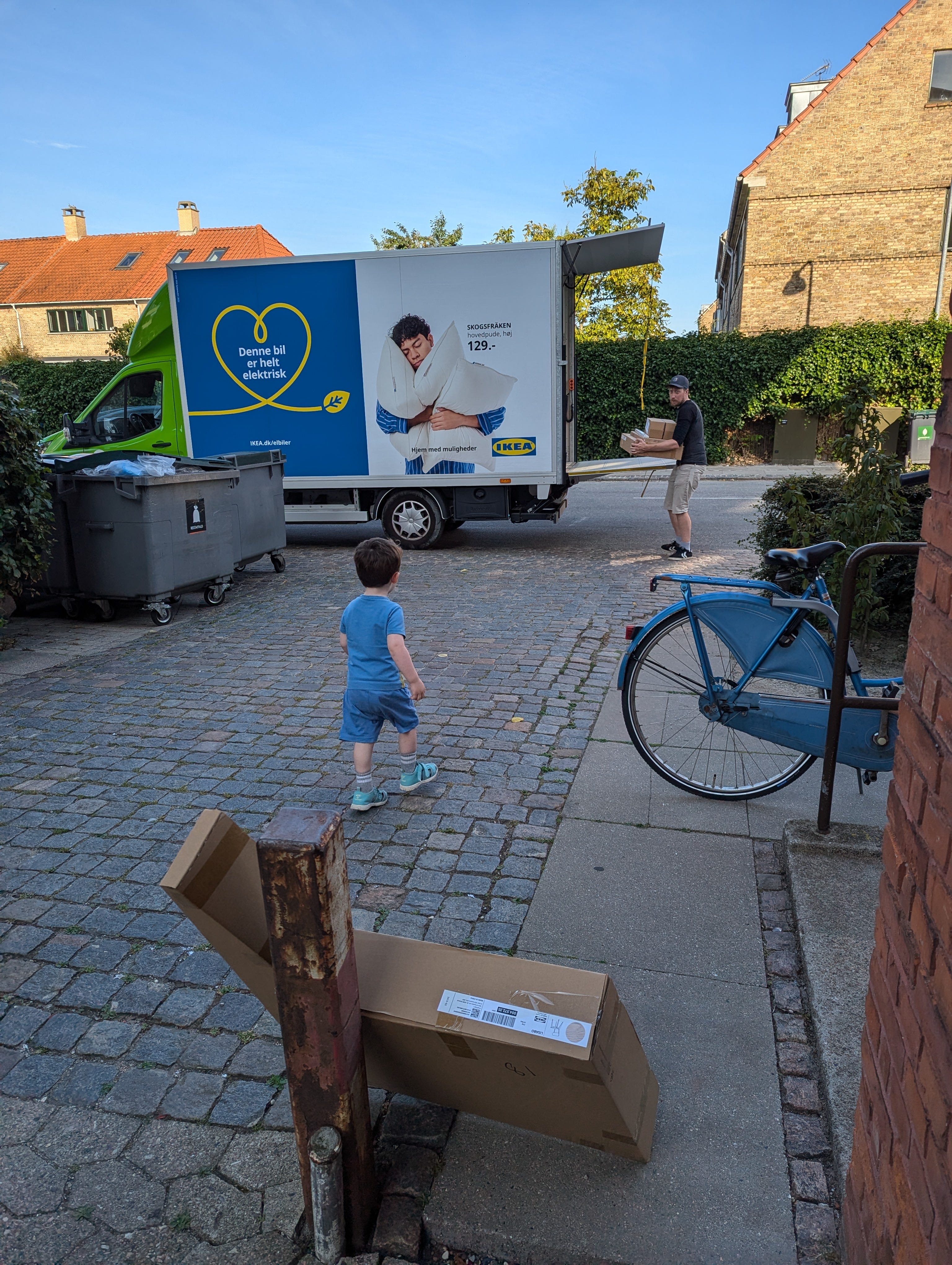 Soon enough we returned to the new place. Ikea graced us with their arrival around 6pm. It was a curb-side delivery. We had ordered a couch, dining table, three dining chairs and a wardrobe for our son’s room. The boxes felt endless as the driver piled them up outside the backdoor of our apartment building. Saving the most overwhelming box for the end…a massive couch.